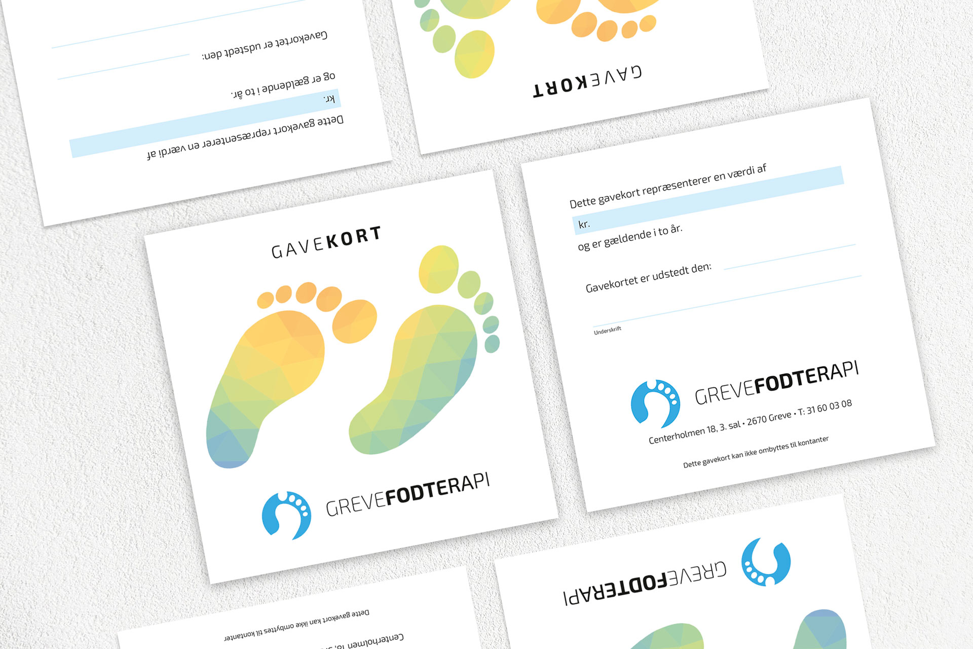 Udvikling af logo og hjemmeside til Greve Fodterapi. Designet er let og enkelt med et farvevalg der symboliserer rene og kliniske forhold. Logoet er let at afkode og fungerer tydeligt i både print- og onlineuniverset. Anvendelsen af styrken i bogstaverne i ordet Fodterapi – fra kraftig til lys – symboliserer den nydelse og lettelse det er at få en behandling hos Greve Fodterapi.