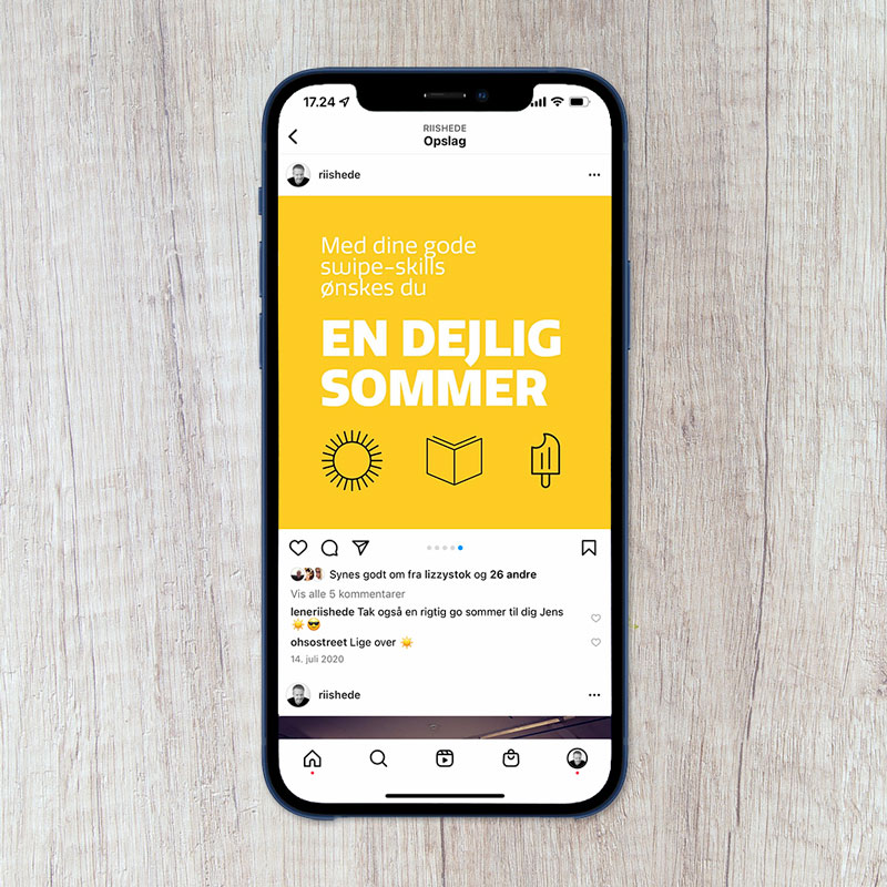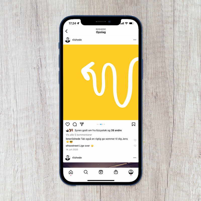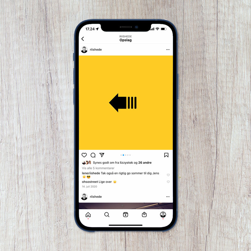 På Instagram kan man uploade flere billeder af gangen – det har været kendt i lang tid. Med lidt planlægning kan man uploade billeder der ser ud som om de hænger sammen. Det har jeg gjort med et 'swipe opslag' hvor baggrunden har samme farve ... og derfor ser ens ud når man swiper. Billederne uploades til instagram i 1080x1080px.